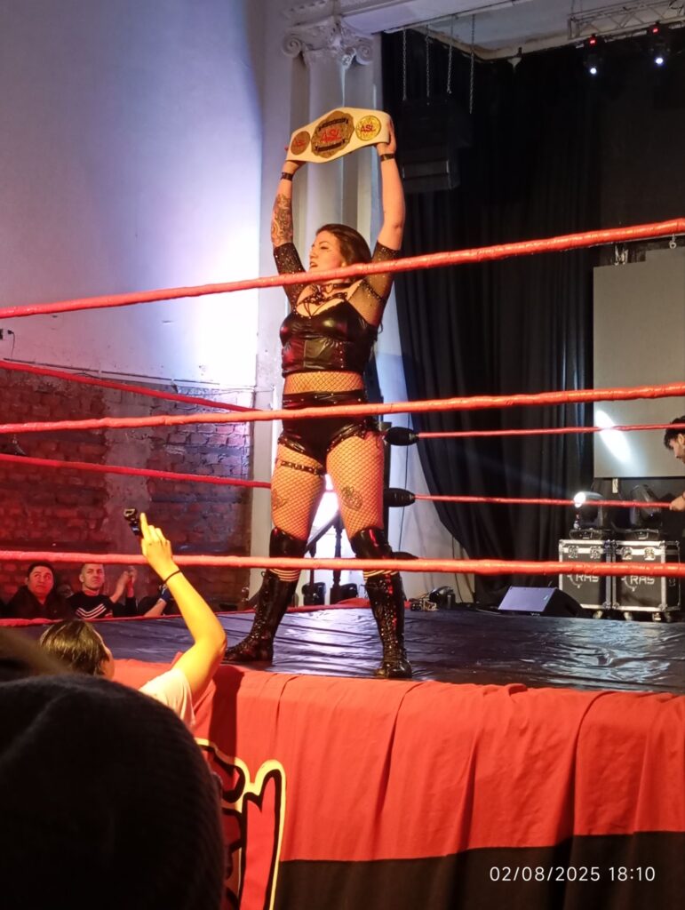 Una decidida Roma prometía llevarse el título y no volver más a Concepción si lo ganaba. Bajo esa premisa, vimos una lucha intensa desde el inicio, Sara atacó con un bidón de plástico apenas comenzaba la lucha, aunque Roma se sentía a placer diciendo que estaba en su terreno, mientras sacaba un esquinero que ella misma recibía más adelante. Sara tuvo su comeback, bajando del ring: “Si esta lucha es Sin Límites, va a ser Sin Límites, mierda”, gritaba la enmascarada mientras sacaba desde abajo del ring una plancha de madera que la puso inclinada en una esquina. Mientras tanto, Roma sacaba una cadena de su atuendo para golpear contundentemente a Sara. Finalmente, y con un Death Valley Driver sobre la misma plancha que puso Sara, Roma derrotó a la campeona y se coronó como la nueva Campeona Nacional Femenina de ASL. Y tal como prometió, Roma recibió el cinturón, celebró un poco y arrancó hasta no verla más.