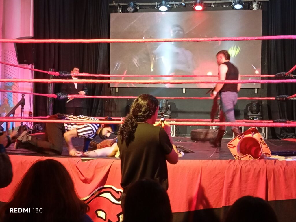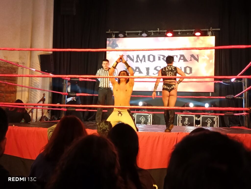 Las historias no tardaron en llegar y en el primer tramo tuvimos a una aún afligida Divinna y a Damián Blanco abriendo el telón, el debut de Terry Cornette y el entrevero con Amadeo Borges por la pronunciación de su apellido. Divinna finalmente encontró su norte con la llegada de Cami Love, que la hizo despertar y le dio ese empujón que la llevó a ser de lo más importante de la batalla, eliminando juntos a Cornette. Otro momento que cuando Manuel Mestre le enrostró a Damián Blanco su pasado “brasileño”, cuando era Joao de Os Garotinhos e incluso le ofreció una bandana para que recordara a quien formó parte del, todavía, equipo con el reinado más extenso de ASL. Por supuesto que Blanco desconoció ese pasado y se enfrascaron en una disputa personal que terminó con Mestre nuevamente eliminando a Blanco. El debutante Balder fue uno de los más aplaudidos pese a su corta participación, y los Warboys tuvieron su disputa personal con Cami Love, donde Gibson Blake tuvo que “sacrificarse” por Danny Cage evitando su eliminación con un beso de Cami. Momento disfrutado por los presentes hasta la entrada de Inmortan Dalsano que eliminó a Cami.