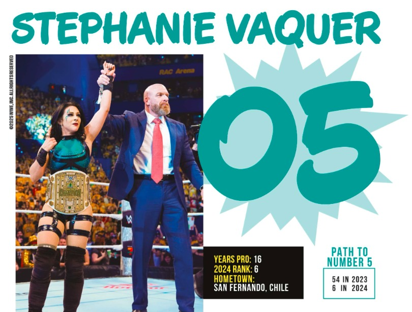 No es ninguna sorpresa que Stephanie Vaquer está encumbrada en los puestos de avanzada de esta lista, metiéndose en el top 5, siendo este puesto el más alto en su carrera, ya que el año pasado ocupó un puesto menos y el 2023 el número 54