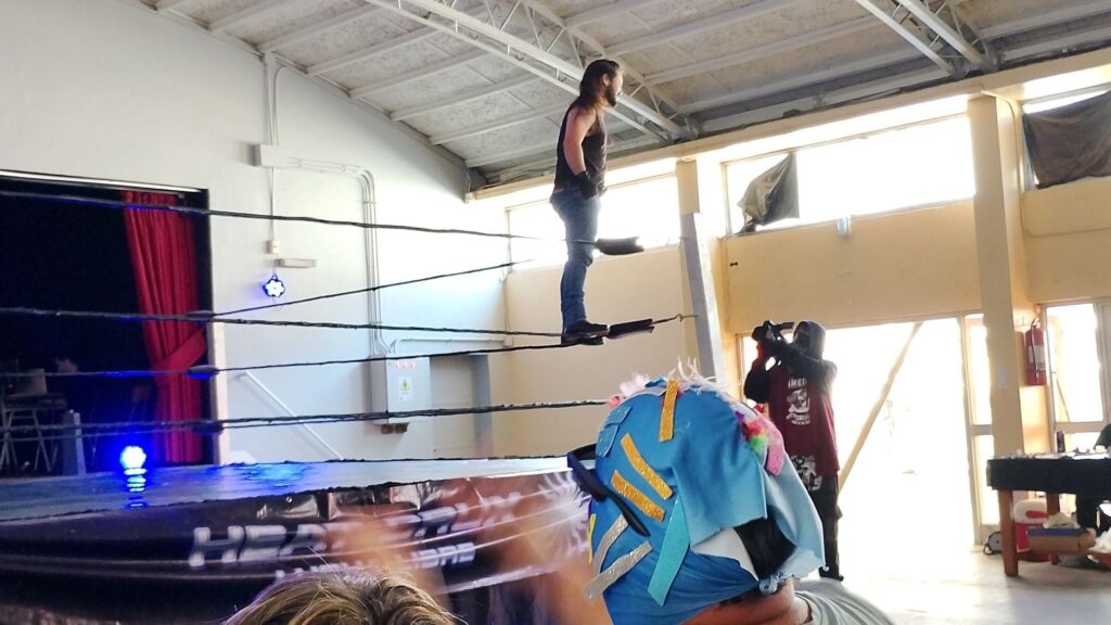 El estelar de la jornada tendría a los dos amigos forjados en La Fábrica del Dolor frente a frente. Había expectativa, sobre todo para quien escribe… Pero la lucha no se dio, porque un conocido equipo irrumpió sorpresivamente para atacar al campeón y al retador, por lo que Jubi Rosee cambió planes y decidió darnos una lucha en equipos.