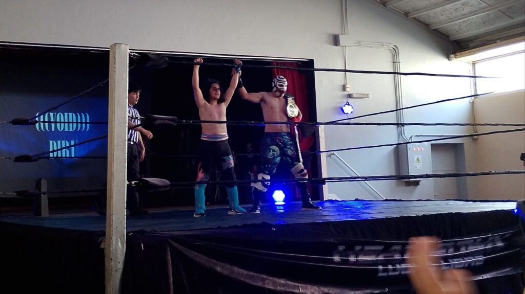 Sí. Danny Cage & Gibson Blake están en Heat Crux. Un combate muy agresivo, casi sin pausas, con acción dentro y fuera del ring se tomó el cierre de la jornada. Buena presentación de Los Warboys, quienes buscaban ser atestiguados y que el público, que tampoco es tan distinto a Acción Sin Límites, ya los conocía. Con La Patada Más Veloz del Sur de Bran y el Salto Al Vacío de Diru sobre Cage, los de La Fábrica Original celebraron ante su gente.